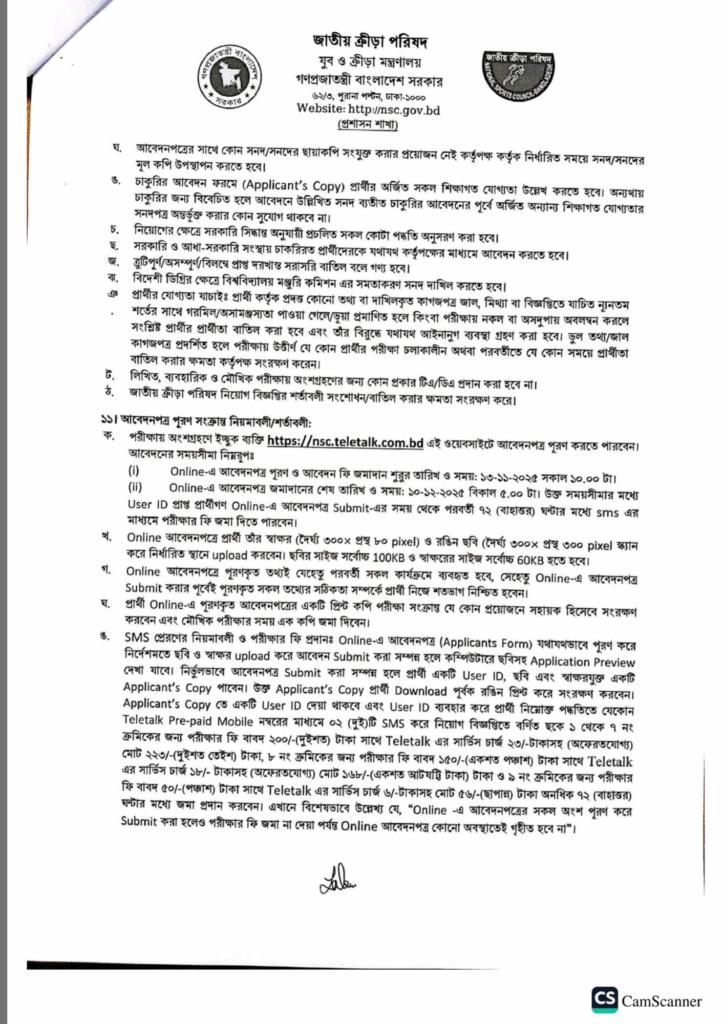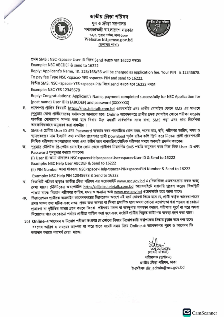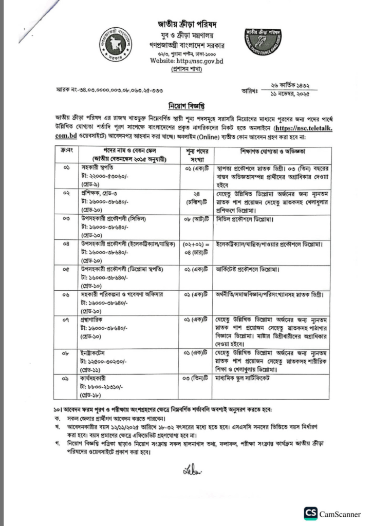 জাতীয় ক্রীড়া পরিষদ কর্তৃক প্রকাশিত অফিসিয়াল নিয়োগ বিজ্ঞপ্তি (ইমেজ/PDF) দেখে পদের নাম, যোগ্যতা, আবেদন পদ্ধতি ও বেতন সম্পর্কে বিস্তারিত জেনে আবেদন করুন।