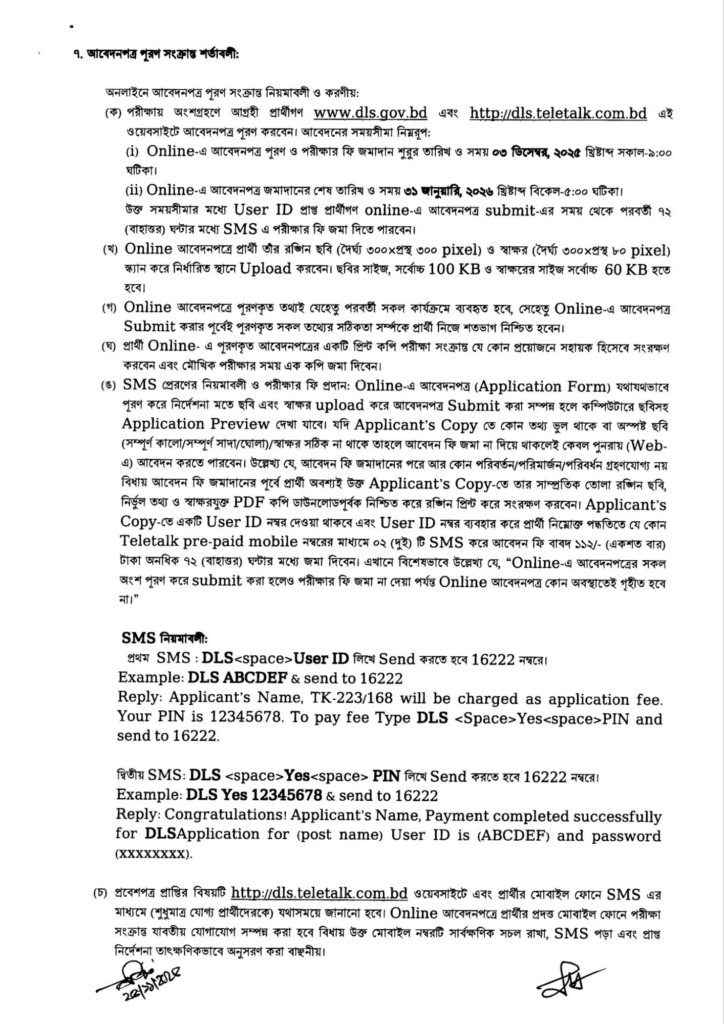 DLS নিয়োগ বিজ্ঞপ্তির সম্পূর্ণ অফিসিয়াল ইমেজ বা PDF-এ সমস্ত তথ্য বিস্তারিতভাবে উল্লেখ আছে। আবেদন করার আগে অবশ্যই মূল বিজ্ঞপ্তিটি ভালোভাবে পড়ে নেওয়া জরুরি।