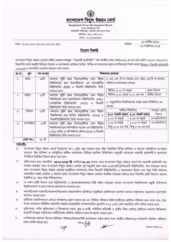 | নিয়োগকারী সংস্থা | বাংলাদেশ বিদ্যুৎ উন্নয়ন বোর্ড (BPDB) |