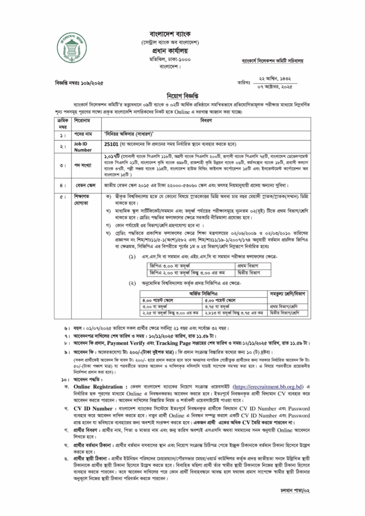 - এটি একটি স্থায়ী সরকারি ব্যাংক চাকরি, যেখানে দীর্ঘমেয়াদি ক্যারিয়ার গড়ার সুযোগ রয়েছে।