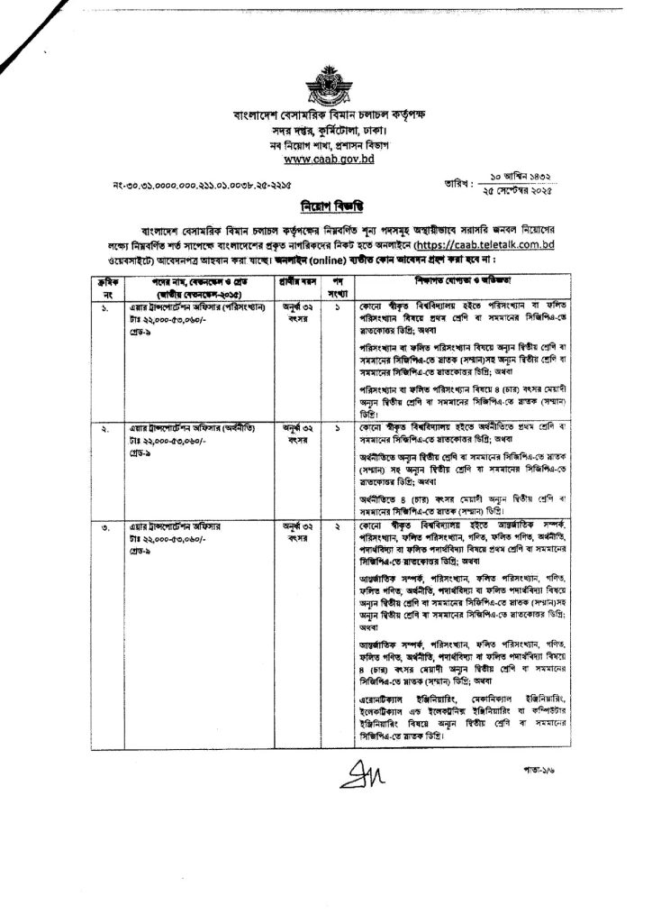 1 thought on “বেসামরিক বিমান চলাচল কর্তৃপক্ষ নিয়োগ বিজ্ঞপ্তি ২০২৫ (CAAB Job Circular 2025)”