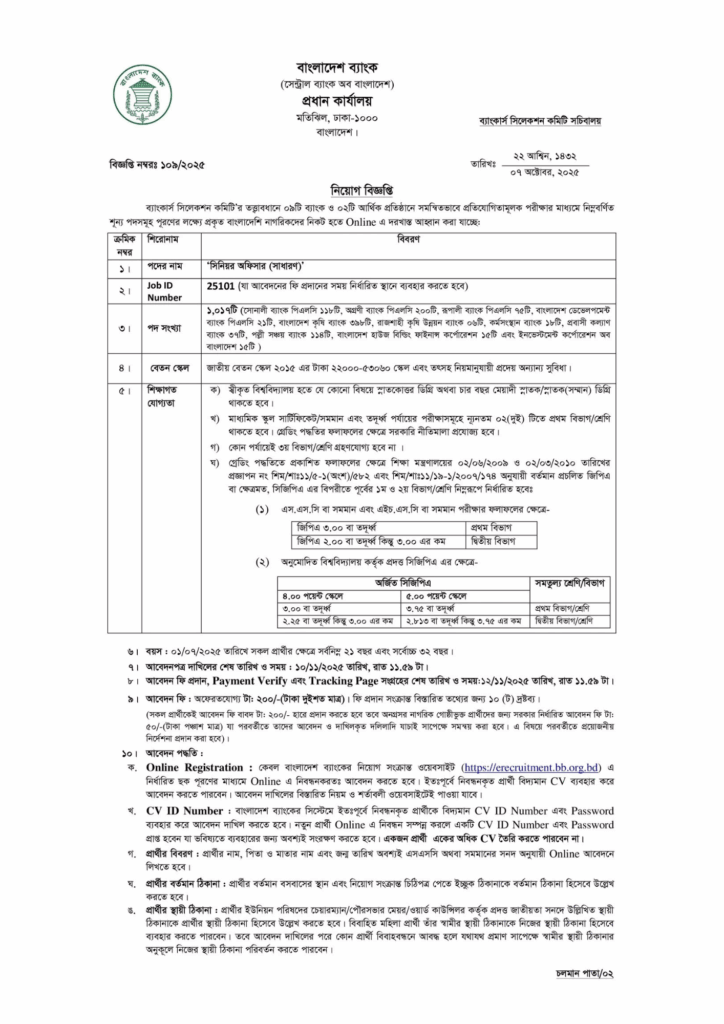 বাংলাদেশ ব্যাংক নিয়োগ বিজ্ঞপ্তি ২০২৫ অফিসিয়াল ইমেজ / PDF