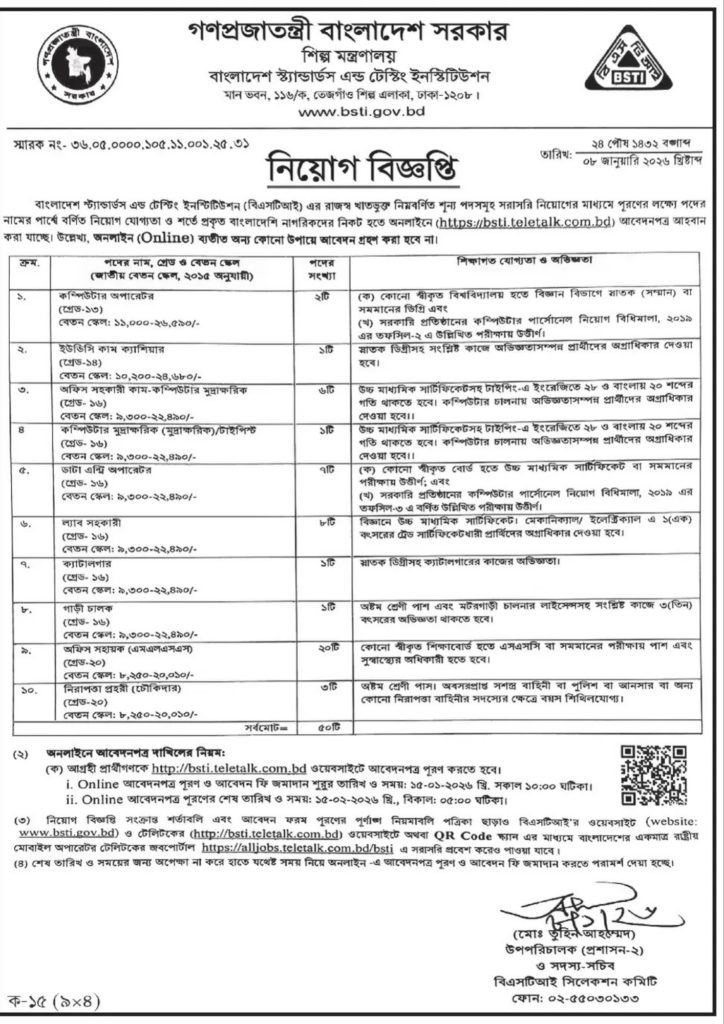 BSTI Job Circular 2026 অনুযায়ী শুধুমাত্র অনলাইনে আবেদন গ্রহণ করা হবে।