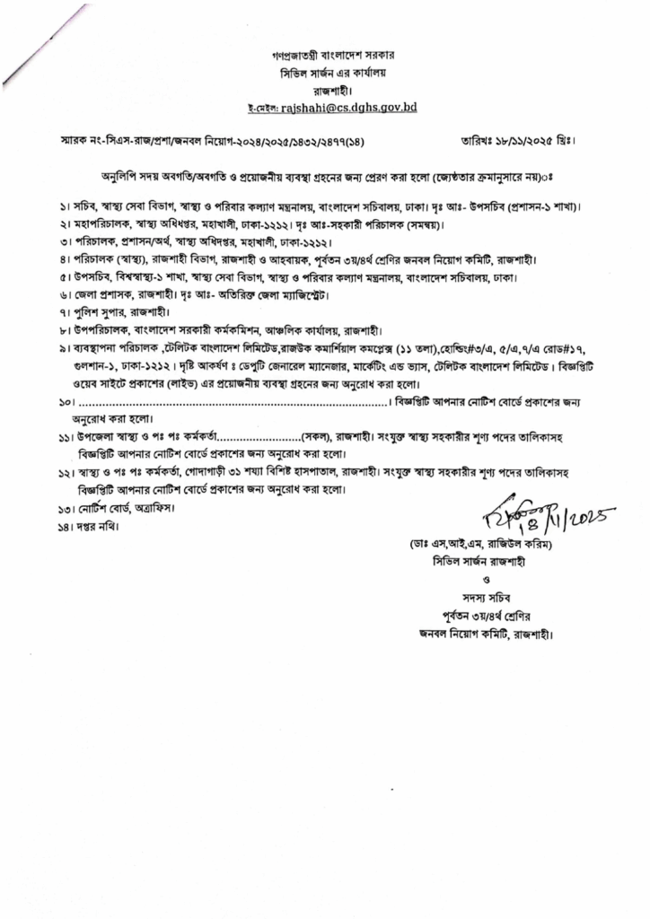 | সংস্থা | রাজশাহী সিভিল সার্জন কার্যালয় |