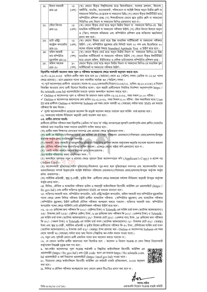 FRC Job Circular 2026-এর আবেদন শুধুমাত্র অনলাইনে গ্রহণ করা হবে।