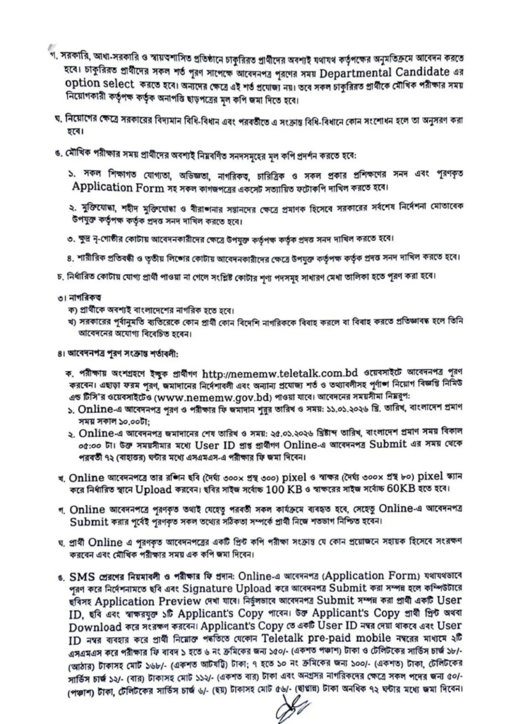 - অনলাইন আবেদন শেষ: ২৫ জানুয়ারি ২০২৬ ইং, বিকেল ৫:০০ টা