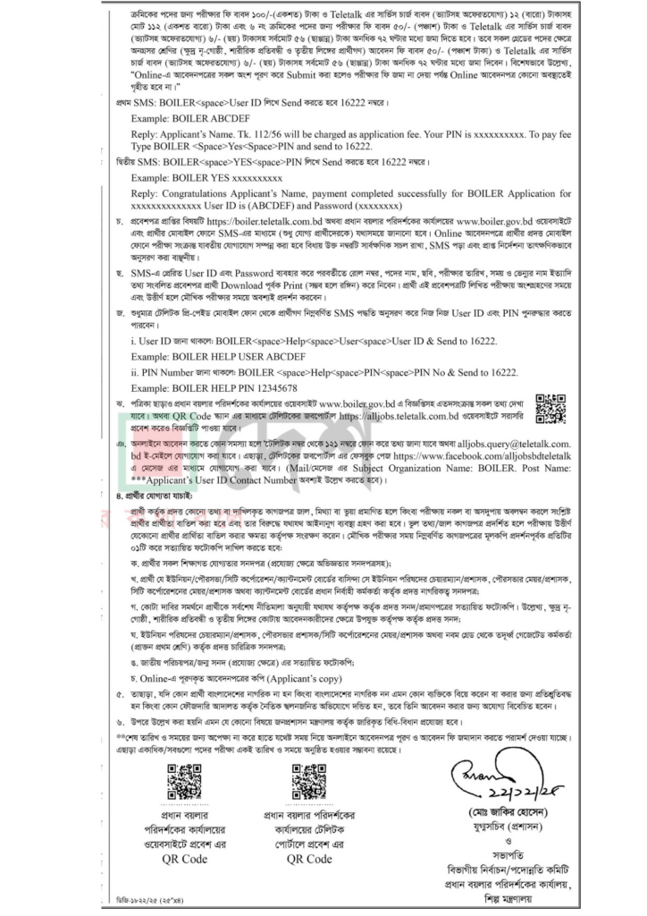চাকরির শিক্ষাগত যোগ্যতা, বয়স, অভিজ্ঞতা, বেতন ও আবেদন সংক্রান্ত সকল গুরুত্বপূর্ণ তথ্য জানার জন্য অবশ্যই প্রধান বয়লার পরিদর্শকের কার্যালয় নিয়োগ বিজ্ঞপ্তি ২০২৬-এর অফিসিয়াল ইমেজ/PDF ভালোভাবে পড়ে নিন। আবেদন করার আগে অফিসিয়াল বিজ্ঞপ্তির তথ্য অনুসরণ করা অত্যন্ত গুরুত্বপূর্ণ।