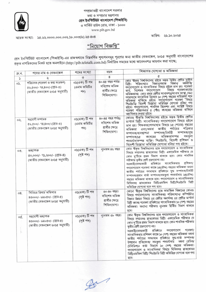 | নিয়োগকারী প্রতিষ্ঠান | প্রেস ইনস্টিটিউট বাংলাদেশ (PIB) |