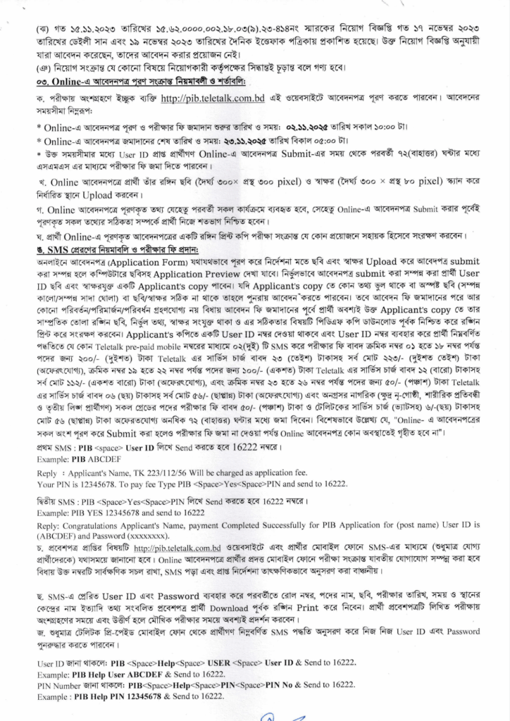 আবেদন করতে হবে সম্পূর্ণ অনলাইনে https://pib.teletalk.com.bd ওয়েবসাইটের মাধ্যমে।