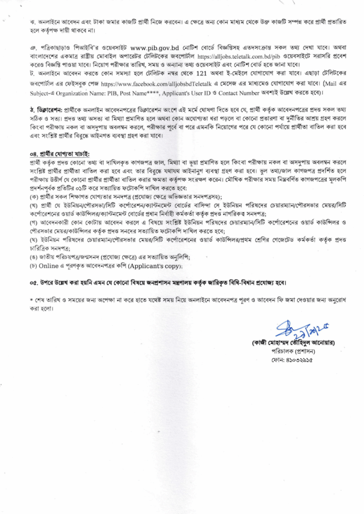 আবেদন লিংক: https://pib.teletalk.com.bd